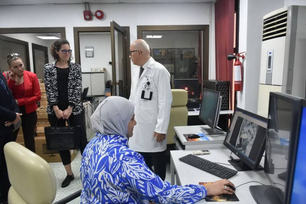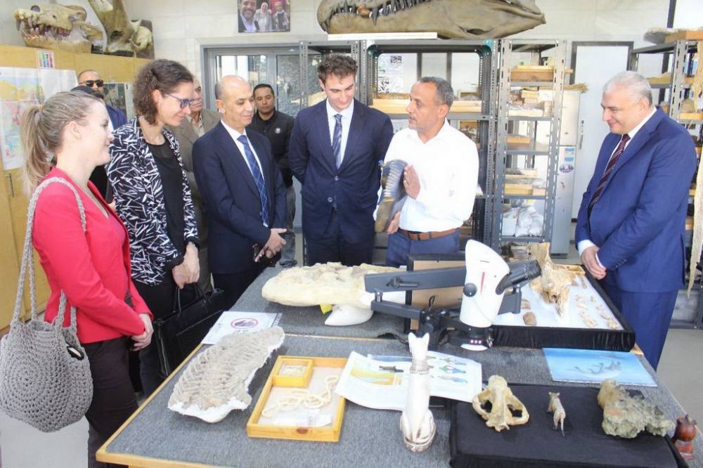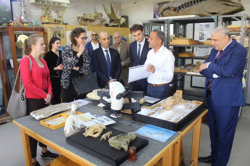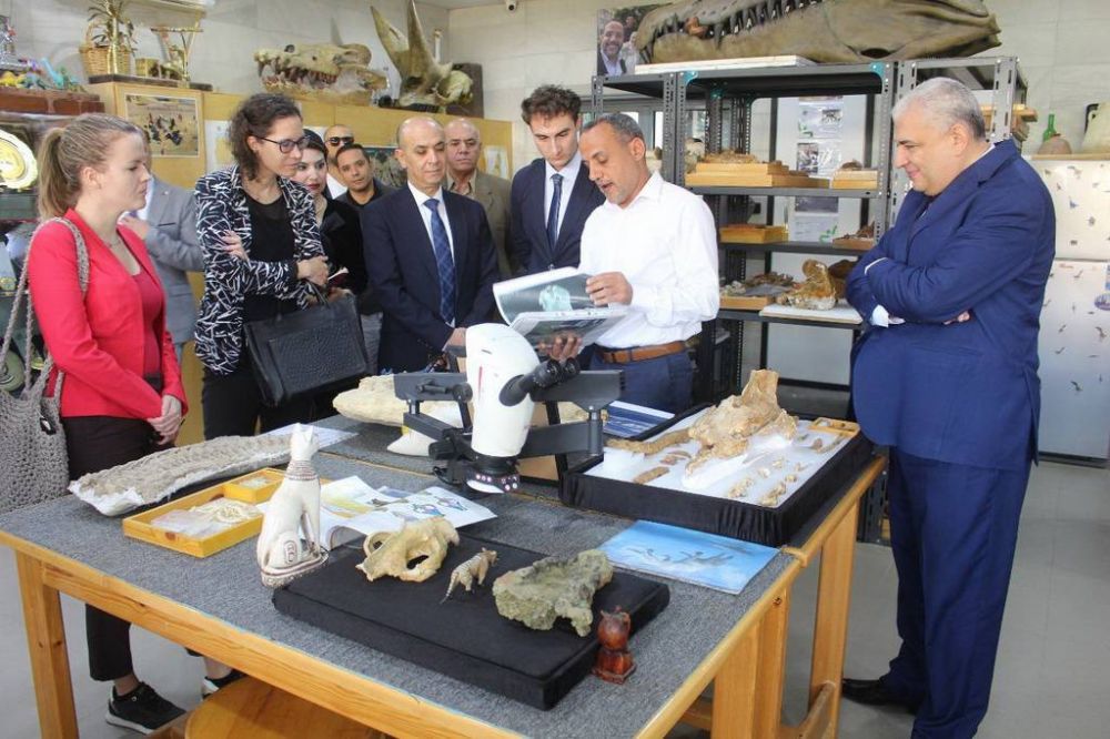 Following the meeting, the delegation was given a tour of several university facilities, led by Prof. Tarek Ghalwash. The tour aimed to showcase the university's capabilities and technological infrastructure, paving the way for exploring joint programs and exchanging academic and research expertise. The tour included a visit to the Vertebrate Paleontology Center at Mansoura University, where the delegation learned about the center's capabilities and its pioneering research specializations, which have made it one of the leading centers in the region for paleontological studies and scientific discoveries. This was followed by a visit to the Urology and Nephrology Center to learn about the latest research and applied programs in the medical field, as well as the advanced diagnostic and treatment capabilities offered by the center.