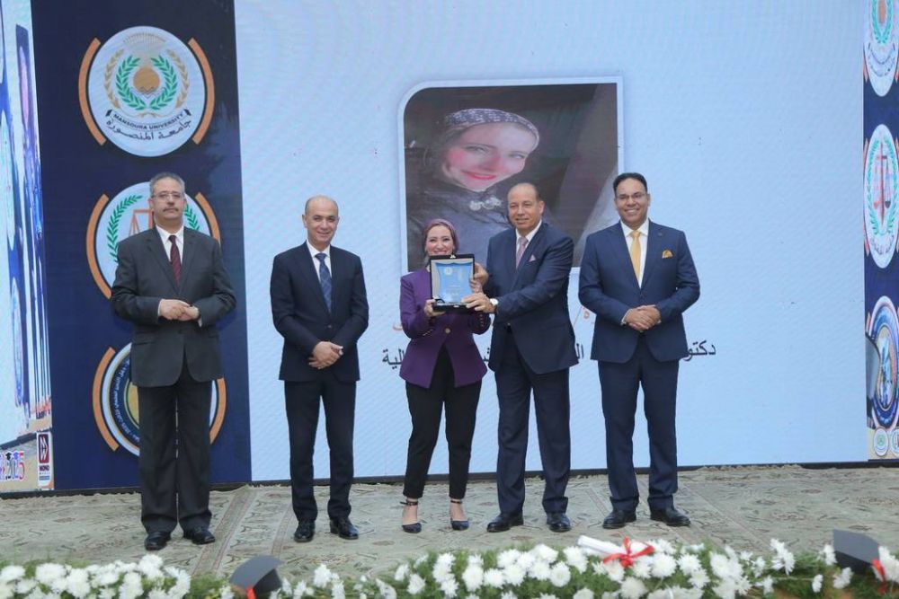 During her speech, Palestinian researcher Ayat Jawad, representing international students, expressed her deep gratitude to Egypt for embracing the sons and daughters of the Arab nation and providing them with a solid academic environment that contributes to shaping the future. She emphasized her profound appreciation to His Excellency President Abdel Fattah El-Sisi for his continuous support of international students and his role in strengthening Arab brotherhood and consolidating Egypt's position as a leading destination for education in the region. She also thanked Mansoura University and its academic leadership, praising the faculty for the academic and humanitarian support it provides, enabling students to achieve their aspirations and confidently embark on broader horizons Out of excellence and creativity.