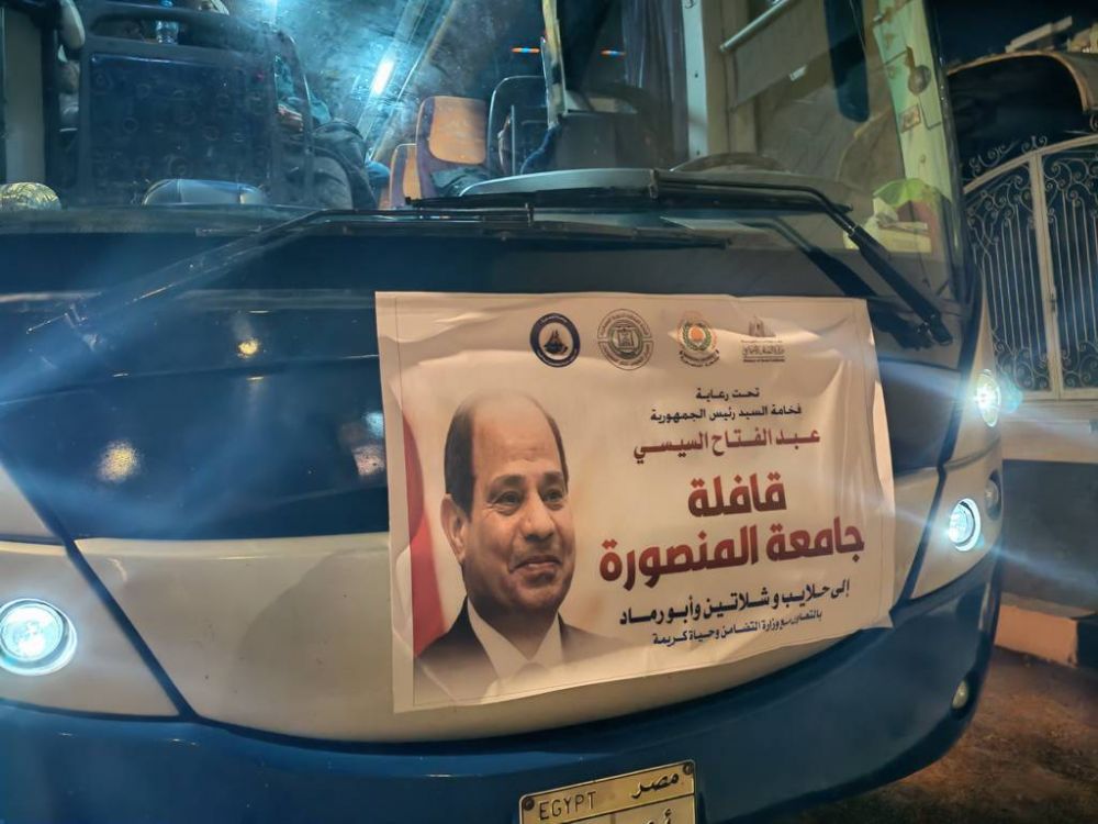 This was preceded by the movement of trucks carrying nearly 20 tons of essential goods, supported by the Dakahlia Directorate of Social Solidarity, along with medicines and medical supplies provided by the university to offer comprehensive services to the residents of Halaib, Shalateen, and Abu Ramad.