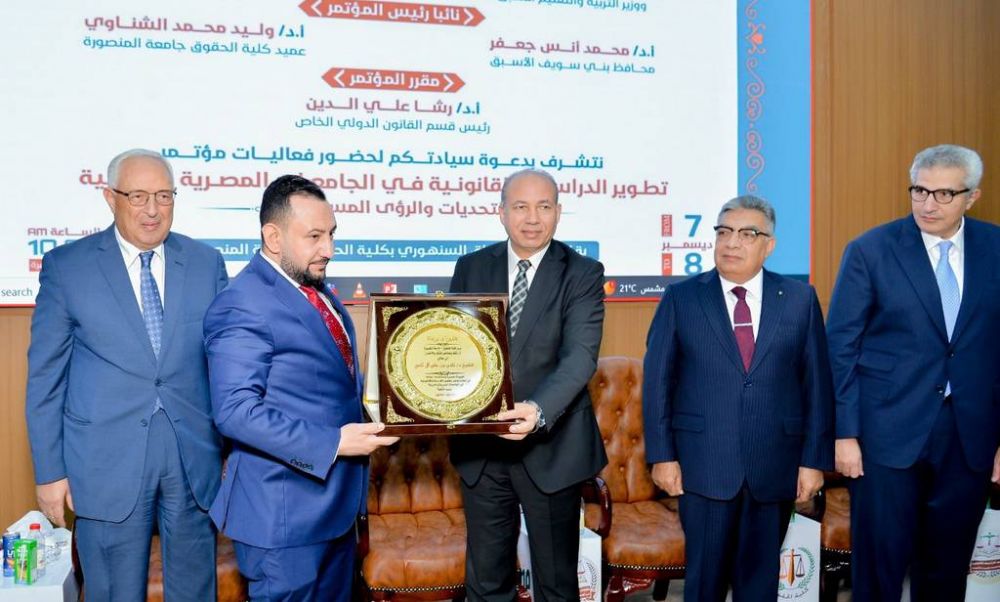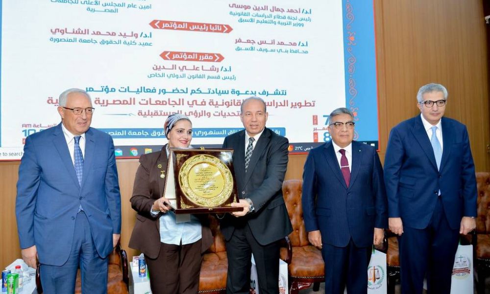 برعاية وزير التعليم العالي وبحضور محافظ الدقهلية وأمين المجلس الأعلى للجامعات رئيس جامعة المنصورة يفتتح مؤتمر «تطوير الدراسات القانونية في الجامعات المصرية والعربية»