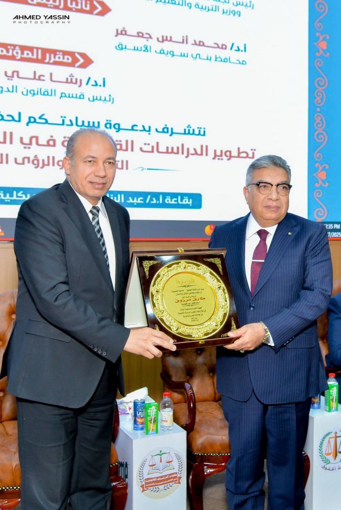 وأشار إلى أهمية إعادة النظر في المناهج وطرائق التدريس، وتعزيز البحث القانوني الجاد، والانفتاح الواعي على التجارب المقارنة، بما يحقق التكامل بين الأصالة والمعاصرة، ويحافظ في الوقت ذاته على الهوية القانونية العربية.