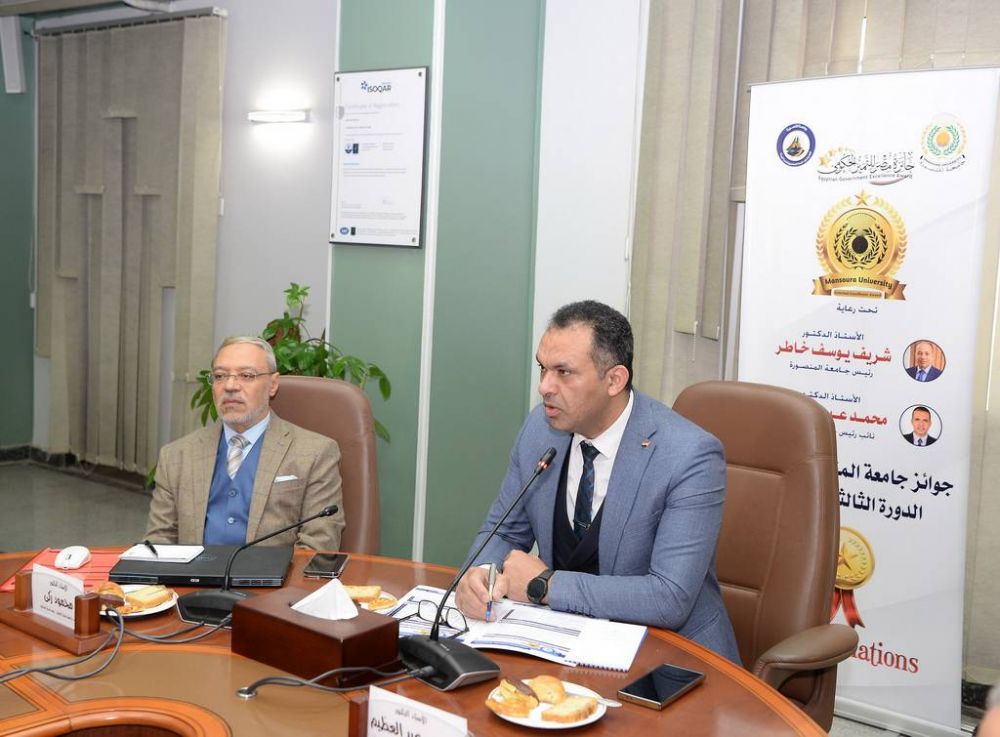 وأكد الدكتور شريف خاطر ترحيبه بالدكتور محمود ذكي، رئيس لجنة التحكيم، وبالسادة أعضاء لجنة التحكيم، وفريق إدارة جائزة مصر للتميز الحكومي، وفريق إدارة الجائزة بجامعة المنصورة، معربًا عن تقديره الكبير لما يبذلونه من جهود مهنية رفيعة لدعم منظومة التميز وترسيخ معايير الجودة والتقييم الموضوعي داخل المؤسسات الأكاديمية.